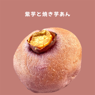 紫芋の生地に長時間かけてオーブンで焼いた紅はるかとあんこを入れて