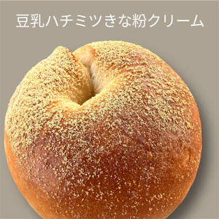 豆乳で練り上げた生地に蜂蜜をプラス、中にきな粉クリームを入れて焼き上げた、優しい味わいのベーグル