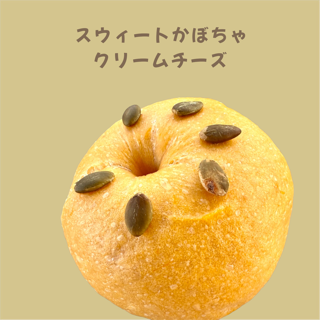 蒸したかぼちゃを生地に練り込み、自家製スィートかぼちゃによつ葉のクリームチーズを入れて