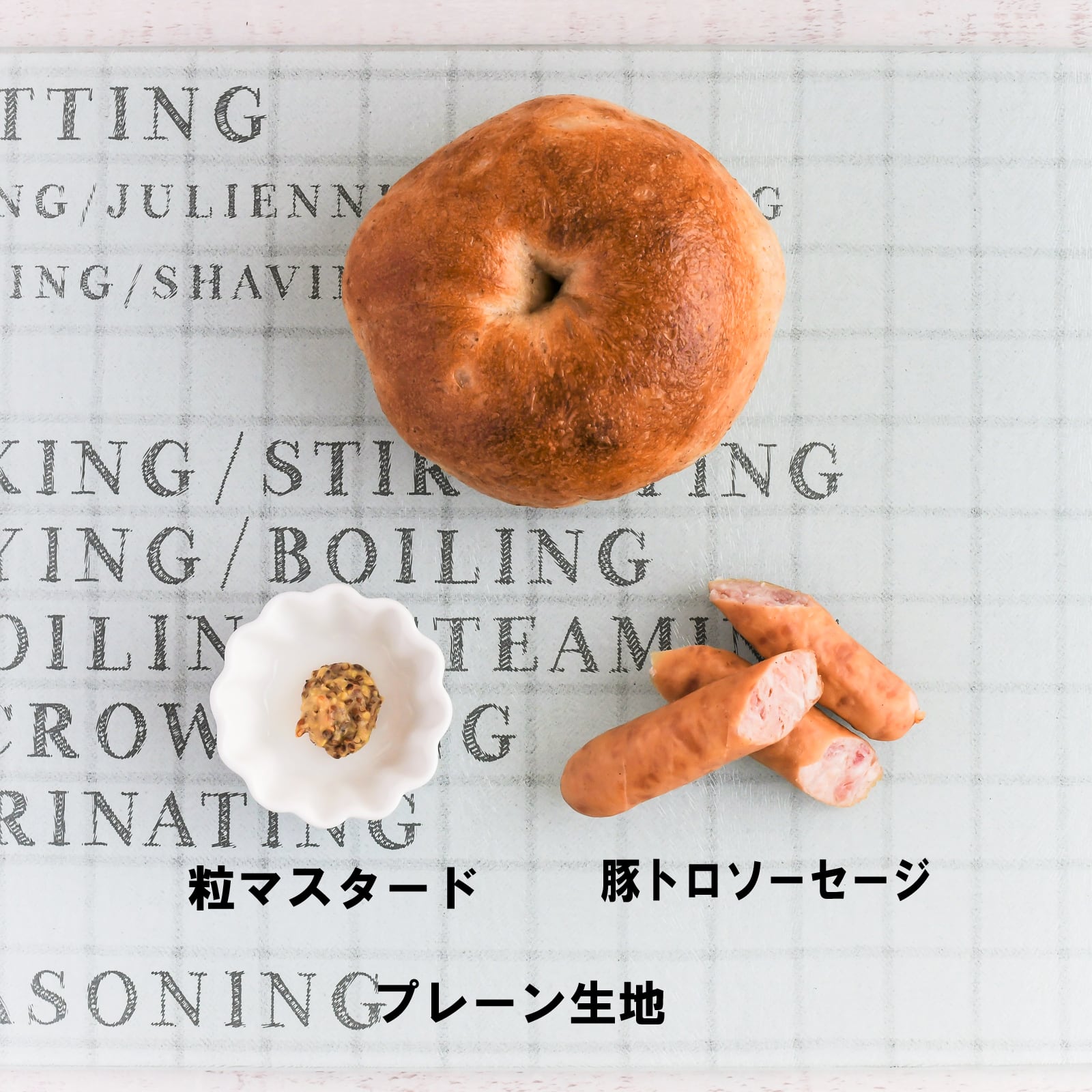 粗びきマスタードが豚トロソーセージのうま味を引き上げます。